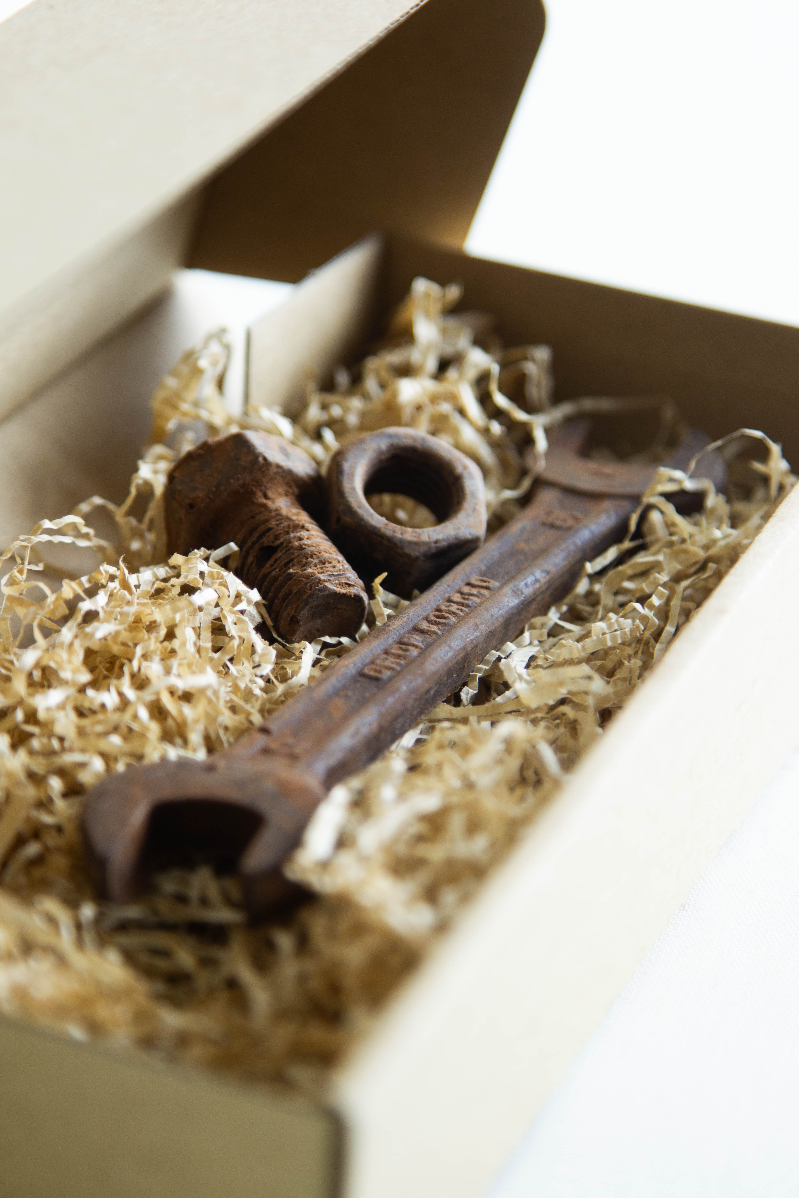 Ja det stämmer, ALLT ÄR CHOKLAD!🍫 Handgjord mörk belgisk choklad med 58% kakaohalt som efterliknar rostiga gamla föremål, mestadels verktyg.