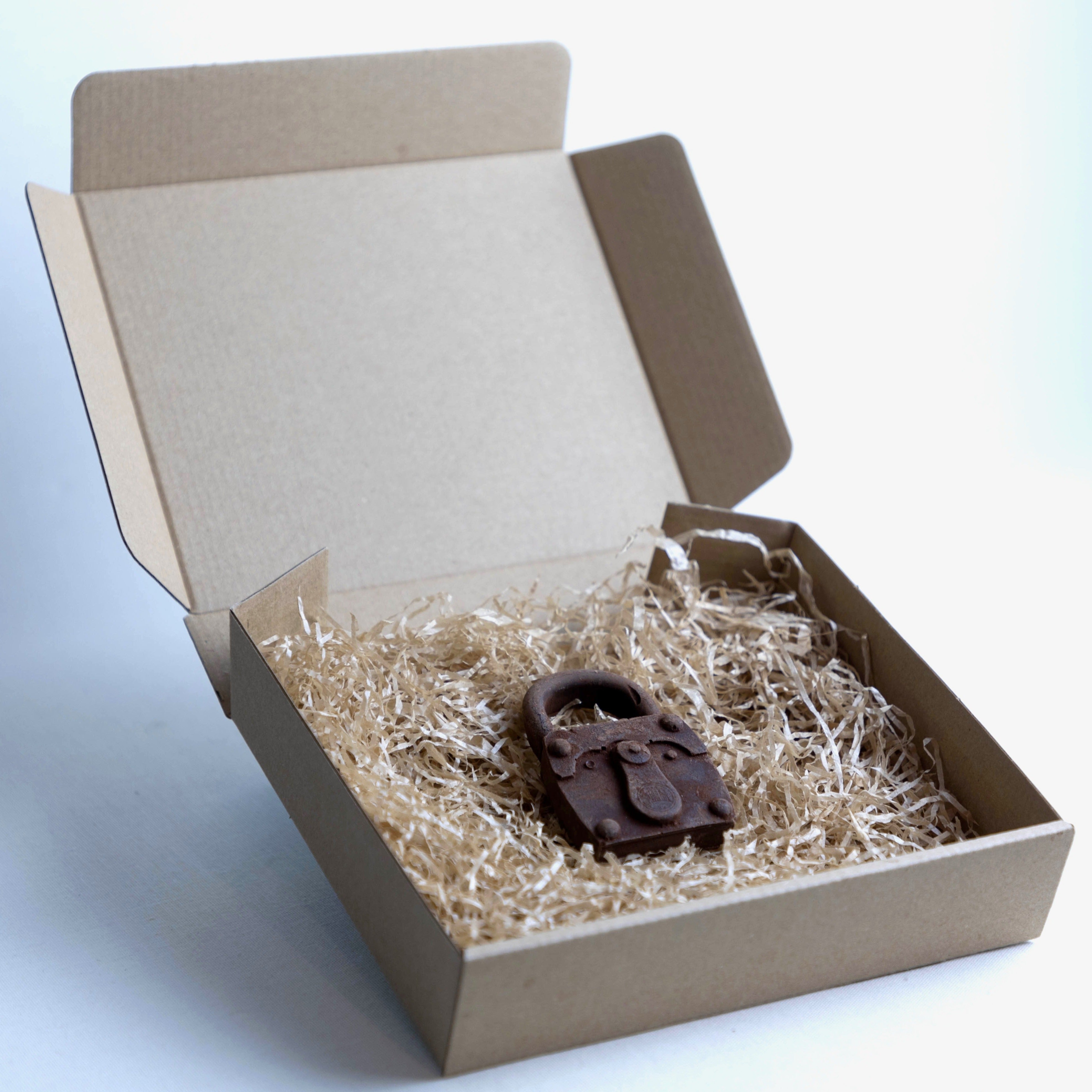 Verklighetstroget lås i choklad. Ett unikt hantverk som är en mycket uppskattad present till "gör det självaren", mekanikern, fixaren eller bara alla som gillar riktigt god choklad.