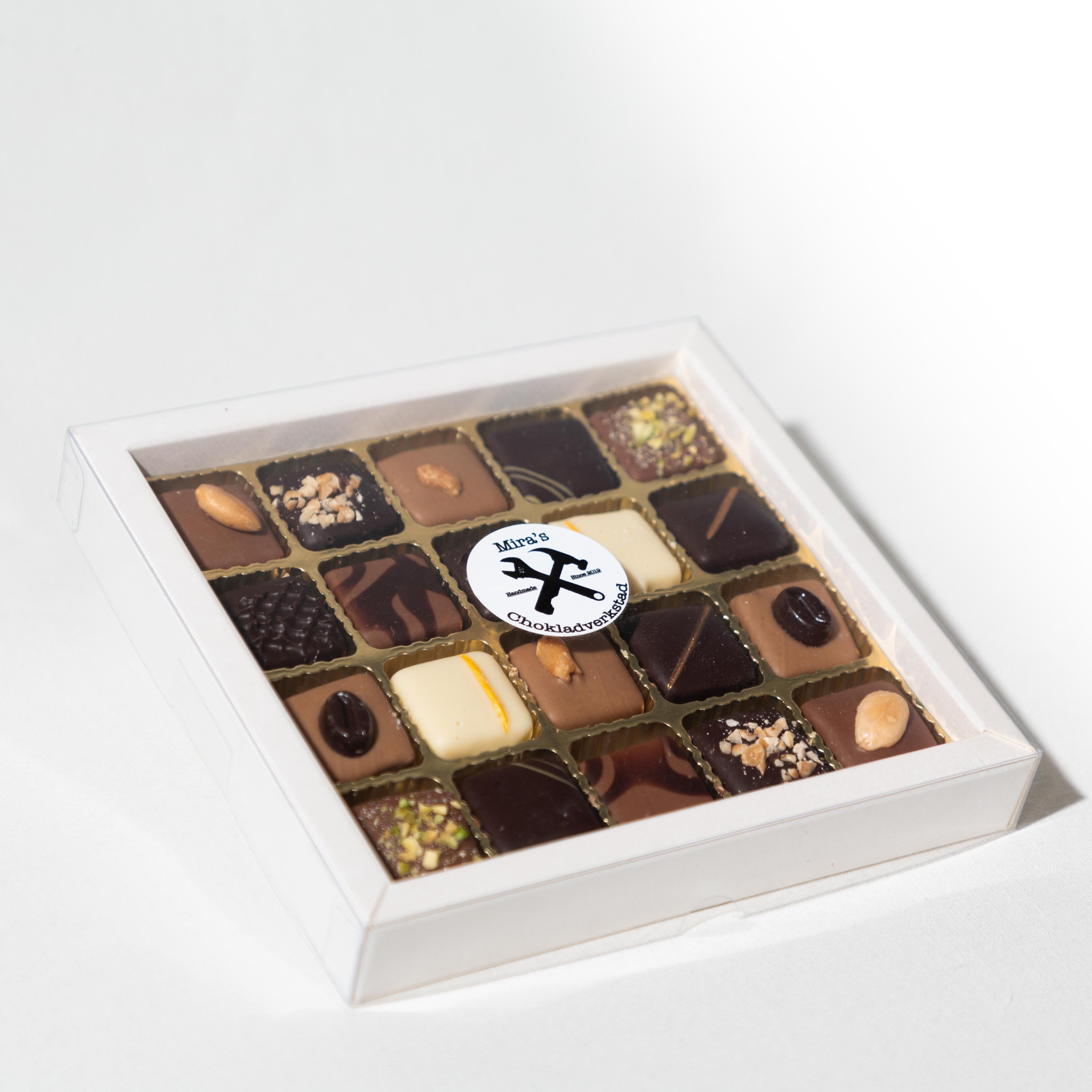 Upptäck vår handgjorda pralinask fylld med utsökta chokladkreationer, noggrant tillverkade av högkvalitativa ingredienser. Varje ask innehåller en mix av smaker som passar både chokladälskaren och den som söker en lyxig gåva. Perfekt som present till någon du tycker om – eller till dig själv för att sätta guldkant på vardagen.